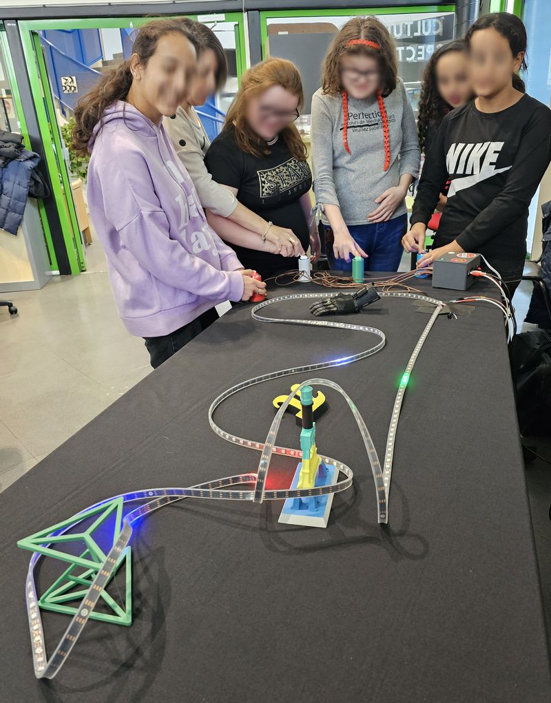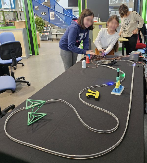 Début avril (le 3 et le 4) nous avions été invités à participer à la semaine « Culture pour tous » à l’ECLA (Espace Culturel Louis Aragon) de Saint-Vallier. Pendant ces deux jours, Rémi, Christian et François ont accueilli des groupes des IME de Saint-Vallier et Montceau, des personnes en cours d’apprentissage du français, mais aussi les jeunes qui fréquentent l’EPN habituellement. Nous avons animé un atelier impression 3D et des courses de voitures avec le jeu de LEDs qui a eu son petit succès !