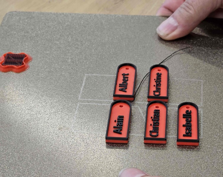 Christine, Isabelle, Alain, Albert et Christian ont créé leur porte clefs nominatif, dessin-tranchage et impression avec une Bambu Lab X1.